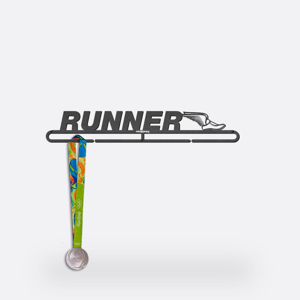 ¿Listo para llevar tu pasión por correr al siguiente nivel? Nuestro colgador de medallas ‘Runner’, con un diseño de zapatilla alada, es el complemento perfecto para celebrar tus logros en la pista. Esta exhibición única, grabada con las impactantes palabras ‘Runner’ y con el detalle de una zapatilla calada en metal resistente, va más allá de ser solo un soporte para medallas. Con espacio para hasta 30 medallas, este colgador es un tributo a tu dedicación y espíritu de superación. Deja que cada medalla cuente la historia de tu resistencia y determinación, convirtiendo tu pared en un testimonio visual de tu viaje como corredor. ¡Haz que cada carrera sea un vuelo hacia nuevos logros y que cada medalla sea un símbolo de tus alas en la pista!